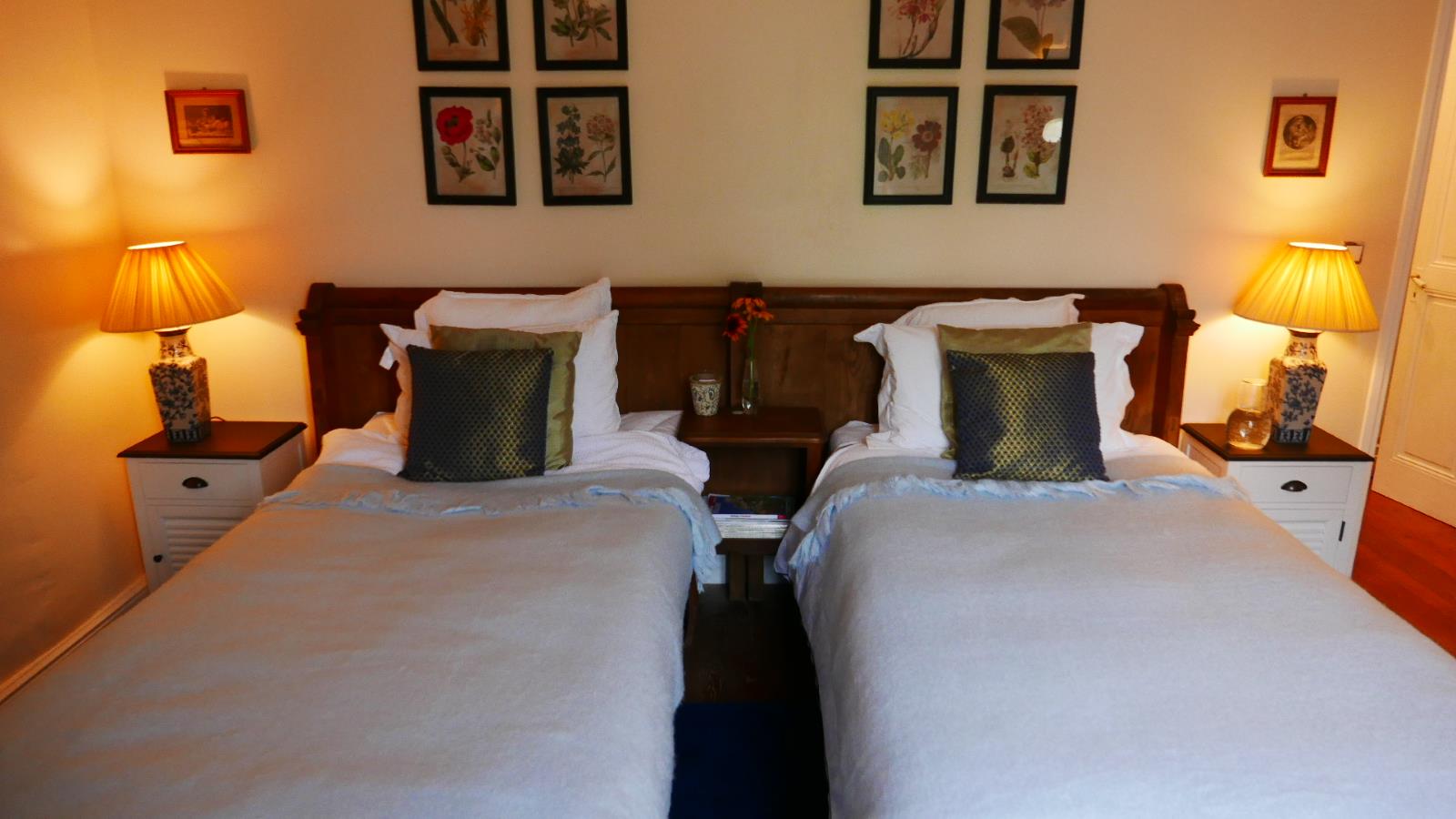 Overlooking the Moroccan courtyard, this peaceful room has generously-sized American twin beds, which can either be separated or moved together giving some flexibility. The room has a charming ensuite shower room and is decorated in tranquil spring colours.