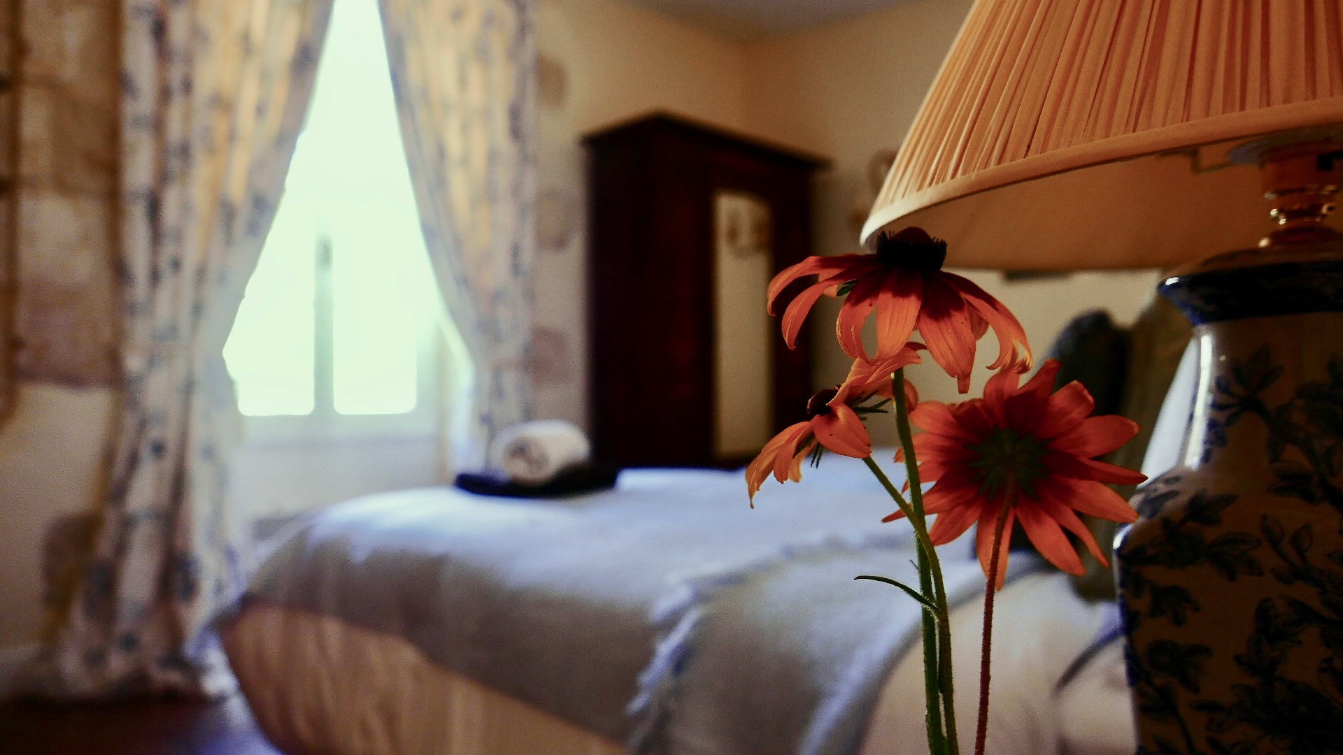 A beautiful room with two beds facing the courtyard
